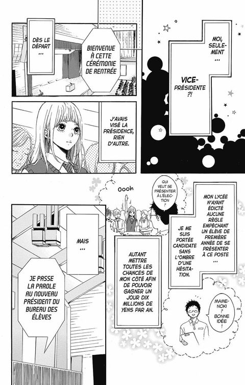 Depuis que son père les a quittées, Anzu vit seule avec sa mère... dans la pauvreté. Aussi, son rêve est simple : réussir dans la vie ! La première étape pour ça, c'est bien évidemment de réussir sa vie scolaire, et quoi de mieux sur son CV que d'être présidente du conseil des élèves ? La jeune lycéenne se présente aux élections des délégués, mais va très vite déchanter : détrônée par le beau Seiji, elle ne devient que vice-présidente. Pire que tout, elle découvre que les autres membres du conseil des élèves ne sont là que pour des raisons complètement futiles. Blasée, Anzu réalise que le chemin vers le succès est encore long... Mais pas le temps de tergiverser : déjà, il faut préparer l'année scolaire, qui sera rythmée par de nombreux évènements, au fil des saisons...