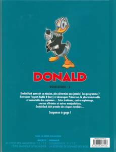 Donald agent secret, nom de code Double Duck ! Donald est plus que jamais enferré dans les problèmes liés à sa vie d'espion : il est couvert de bleus et de bosses, Daisy ne comprend pas pourquoi elle l'a vu dans les bras d'une jolie brune (qui n'est autre que l'agent Kay K), et il ne sait plus à qui faire confiance ! En effet, après la trahison de B-Berry, c'est au tour de B-Black d'être soupçonné de vouloir s'emparer de la disquette contenant les noms de tous les membres de l'agence. Donald est mis sur le coup par Jay J Mais les traîtres ne sont pas forcément ceux que l'on croit ! Suite et fin d'une aventure où notre ami Donald n'a rien à envier à James Bond, pour le plus grand plaisir des amoureux d'aventure et d'humour !