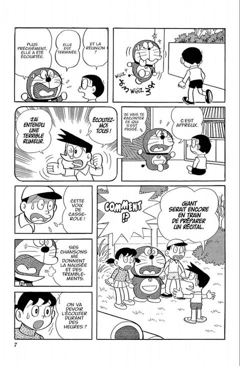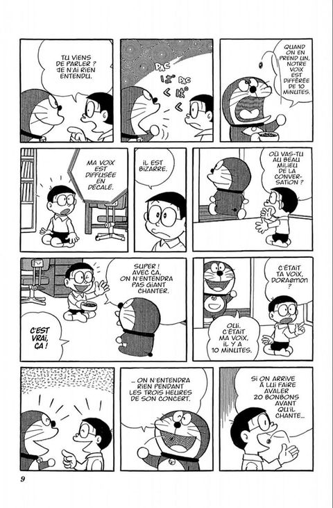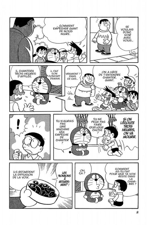 L'heure est grave ! Une terrible rumeur circule ! Giant préparerait un récital pour son prochain concert. Un concert de trois heures qu'il compte donner devant tous ses amis ! Nobita et ses amis sont terrorisés à l'idée d'entendre chanter ce petit caïd ! Heureusement, DORAemon a plus d'un tour dans son sac et utilisera des bonbons à retardement pour éviter le pire ! Mais attention aux effets contraires de ces friandises ! Une astuce parmi tant d'autres que DORAemon proposera à Nobita pour s'extirper des situations les plus farfelues !
