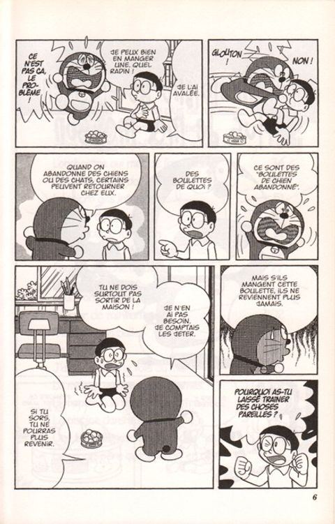 ""Nobita est un jeune garçon assez irresponsable, complètement gaffeur et maladroit. Un jour, pourtant, débarque dans sa vie un chat-robot venu du futur. Il se nomme Doraemon, il est en fait envoyé par le futur petit-fils de Nobita. Sa mission sur Terre : sauver Nobita de ses échecs successifs et donc sauver la famille de la déchéance. Il va donc devoir s'atteler à faire évoluer Nobita dans le bon sens et, par là, infléchir le destin.