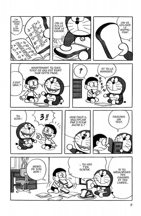 Catastrophe ! Nobita n'a pas étudié et deux contrôles sont prévus pour le lendemain ! DORAemon lui vient en aide avec son ""rappel-pain"", une invention venue du futur. Mieux qu'un pense-bête, celui qui mange une tranche de ce pain posée sur un cahier se souvient du contenu des pages. Nobita aura-t-il assez d'appétit pour passer ses examens ?