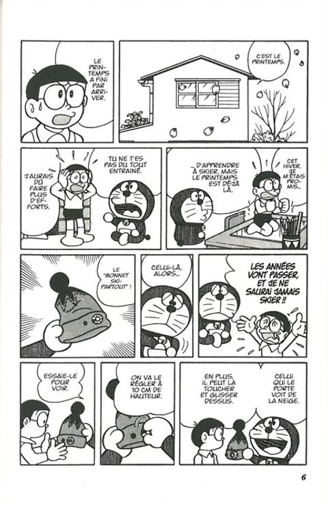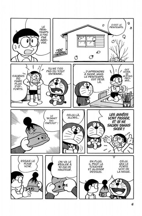C’est la fin de l’hiver, et Nobita n’a toujours pas appris à skier ! Doraemon lui prête alors un bonnet très spécial… Mais comme d’habitude, l’enthousiasme et l’insouciance de Nobita lui valent bien des tourments lorsqu’il essaie les gadgets de Doraemon, et ce ne sont pas les curiosités botaniques sorties de la « machine à fabriquer de nouvelles plantes » des deux compères qui vont les aider…