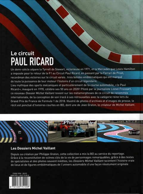 Le circuit Paul Ricard, lieu emblématique du sport automobile inauguré en 1970, célèbre ses 50 ans ! Piloté par le journaliste Lionel Froissart, ce nouveau "Dossier Michel Vaillant" revient sur les métamorphoses du circuit à la légendaire ligne droite, de la conception de son tracé au grand retour du Grand Prix de France de F1 en 2018. Illustré de photos d'archives et d'images de presse, le récit est ponctué d'histoires courtes en BD, dont une de Jean Graton, le créateur de "Michel Vaillant".