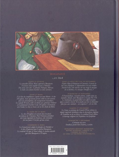 Dénouement de la série Double Masque dans cette dernière intégrale pleine de rebondissements : alors que l'ancien consul Bonaparte poursuit son inexorable ascension vers le trône d'empereur, les complots à son encontre se multiplient. Fouché, l'Écureuil et la Torpille veillent au grain, mais il est des affrontements que l'on doit mener seul, à l'instar de celui qui oppose l'Abeille à la Fourmi. Les tentatives d'assassinat de ce dernier ont échoué ; voici venu le temps des pourparlers. Car, après tout, aucun des deux ne connaît l'origine de ces masques qui les lient, comme l'ombre et la lumière.