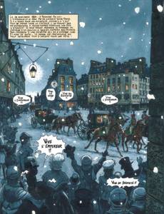 Dans ce dernier de la série historique Double Masque, Jean Dufaux et Martin Jamar multiplient les rebondissements : Bonaparte deviendra-t-il Napoléon ? Dans la nuit qui précède son Sacre, en novembre 1804, les conspirateurs s'affairent. Mais tout se décidera à nouveau dans l'ombre des bas-fonds : l'Écureuil déjoue le complot tandis que la Fourmi, décidé à prendre en main son destin, va à la rencontre de la Berbère. Au matin, la France aura un nouvel Empereur et les cloaques risquent bien d'avoir un nouveau maître...