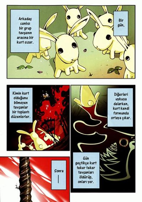 Rabbit Doubt fait fureur au japon : dans ce jeu sur téléphone portable. Des lapins doivent débusquer le loup qui se cache parmi eux. Quant au loup, il doit utiliser tous les subterfuges possibles pour semer la confusion dans le groupe et éliminer un par un tous ses adversaires... Mais pour cinq fans du jeu. Rabbit Doubt ne tarde pas a virer au cauchemar: ils se réveillent enfermes dans un bâtiment désaffecte avec, à leurs côtes, le corps d'une camarade assassinée. Tatoue sur la peau des adolescents, un mystérieux code-barres qui leur permet à chacun d'ouvrir une. Porte différente semble être leur seul espoir de salut. Pas de doute: un loup se cache rien parmi eux, et il leur faudra le démasquer avant d'être dévorés... Entre Saw et Dix petits nègres, un suspense haletant signe Yoshiki Tonogai.