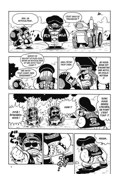 Bienvenue au village Pingouin. Vous ferez la connaissance de Senbeï Norimaki et de sa création, le robot à l'apparence d'une petite fille qui ne fait que des bêtises.Très proche de l'univers des dessins animés de Tex Avery, Akira Toriyama nous livre ici une série complètement délirante où il laisse sa fantaisie le diriger. Les trouvailles graphiques et l'humour insolent d'Akira Toriyama ont fait de cette série son premier succès, avant qu'il ne crée Dragon Ball.