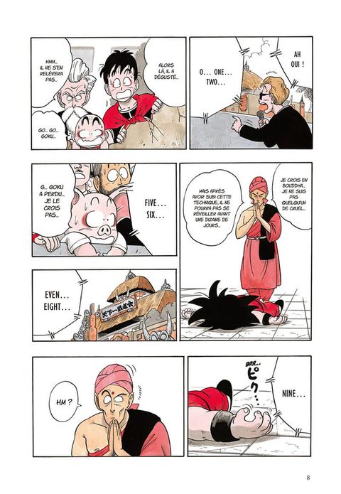 Goku est parvenu à vaincre tous ses opposants et à se qualifi er pour la fi nale du grand tournoi des arts martiaux ! Mais face à lui se dresse le terrible Jackie Chun, rien moins que son maître Kamé Sennin venu incognito. Le duel entre le maître et son élève est l'un des moments phares de ce manga ! En effet, confronté à un Goku au meilleur de sa forme, le vieillard va devoir se livrer comme jamais... À signaler, la présence exceptionnelle de pas moins de 42 pages couleurs !