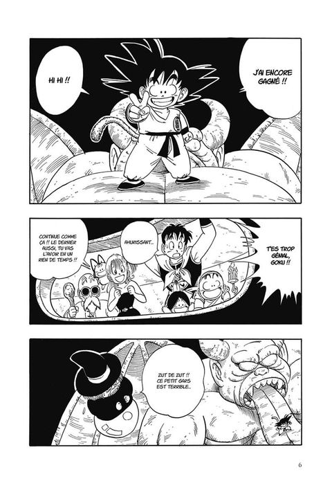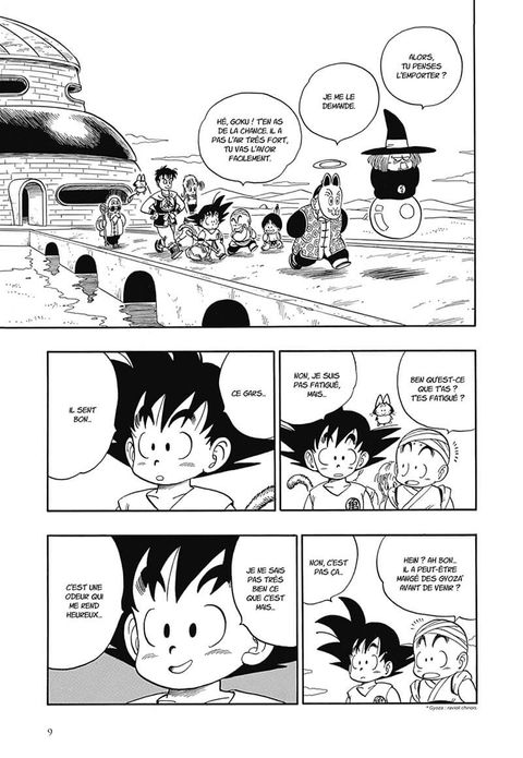 L'apparition de san Gohan, ce tome nous montre enfin sans Gohan, rien que pour ça, pour la réaction de Goku enfant qui se jette dans les bras de son Gohan, ce tome vaut le coup! Les premiers tome sont tellement plus riche en émotion, c'est extrêmement agréable et plaisant à lire. (...) Voir le commentaire