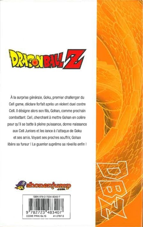 À la surprise générale, Goku, premier challenger du Cell game, déclare forfait après un violent duel contre Cell. Il désigne alors son fils, Gohan, comme prochain combattant. Cell, cherchant à mettre Gohan en colère pour qu’il se batte à pleine puissance, donne naissance aux Cell Juniors et les lance à l’attaque de Goku et ses amis. Voyant ses proches souffrir, Gohan libère sa fureur ! Le guerrier suprême se réveille enfin !