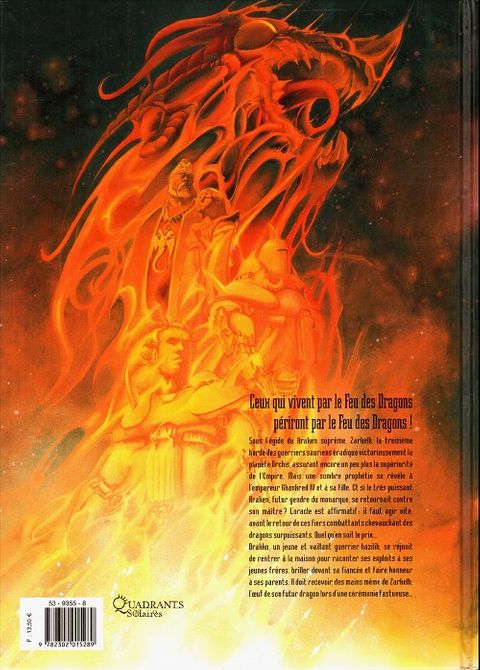 "Ceux qui vivent par le Feu des Dragons périront par le Feu des Dragons ! " Sous l'égide du Kraken suprême Zarkelh, la treizième horde des guerriers sauriens éradique victorieusement la planète Orchis, assurant encore un peu plus la supériorité de l'Empire. Mais une sombre prophétie se révèle à l'empereur Ghankred IV et à sa fille. Et si le très puissant Kraken, futur gendre du monarque, se retournait contre son maître ? L'oracle est affirmatif : il faut agir vite, avant le retour de ces fiers combattants chevauchant des dragons surpuissants. Quel qu'en soit le prix... Drakko, un jeune et vaillant guerrier-bazilik, se réjouit de rentrer à la maison pour raconter ses exploits à ses jeunes frères, briller devant sa fiancée et faire honneur à ses parents. Il doit recevoir, des mains même de Zarkelh, l'oeuf de son futur dragon lors d'une cérémonie fastueuse..."