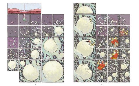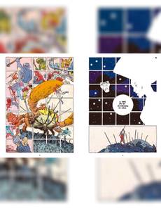 Album exceptionnel pour sa conception graphique, découpage et narration quasi muette. Les pages se tournent et j’y découvre à chaque fois un tableau en double page où s’insinuent les personnages et leur histoire. Une vraie claque visuelle. L’histoire est une révision de la genèse façon SF/Fantaisie. Un futur classique s’il ne l’ai pas déjà (...) Voir le commentaire