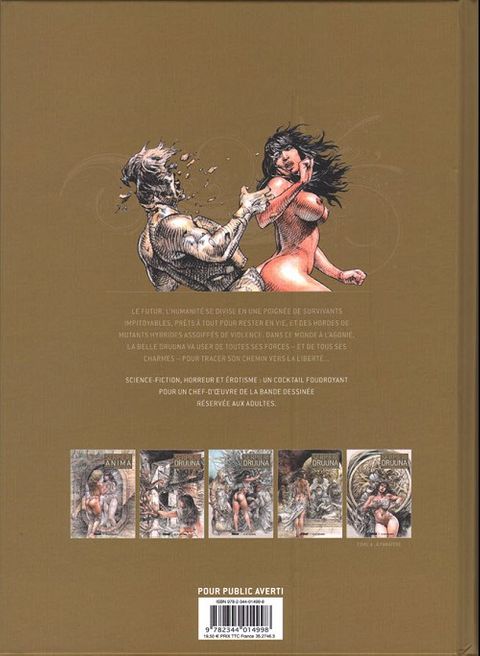 Sortie d'un étrange rêve en compagnie de son amant Shastar, Druuna est convoquée par le commandant du vaisseau. Le « mal » est à bord, et c'est elle qui doit retrouver la formule du sérum capable d'endiguer ce fléau. Druuna part alors pour un nouveau voyage cérébral au coeur de la cité dont elle est originaire. Elle y retrouvera Shastar bien sûr, mais aussi son gnome sauveur et le docteur Ottonegger, qui lui révèlera l'ingrédient nécessaire au remède qu'elle cherche, une fleur mystérieuse : la Mandragore... Druuna, série de référence de la bande dessinée érotique des années 1980, est aujourd'hui rééditée chez Glénat ! Ce troisième album reprend Mandragora et Aphrodisia, les épisodes 5 et 6 de la saga. Chaque album de cette nouvelle édition - un volume tous les 3 mois - est enrichi d'un cahier graphique.