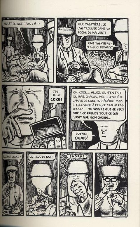 À peine remise de la parution du tome 1 de Dungeon Quest en octobre dernier, livre qui était en quelque sorte son premier ouvrage de "Fantasy", L'Association publie déjà le deuxième tome de cette trilogie, toujours en avant-première sur la future édition américaine de Fantagraphics. Les lecteurs ayant apprécié cette histoire inspirée de l'univers des jeux de rôles, aux parfums ésotériques et psychédéliques, ne seront pas déçus par la suite de la Quête : Joe Daly continue à dérouter son lectorat en parasitant allègrement les poncifs du genre, avec des scènes hallucinantes qui lui sont a priori totalement antinomiques. Néanmoins, on n'est pas ici dans la parodie : l'épopée vécue par Millenium Boy, Steve, Lash Penis et Nerd Girl relève d'un premier degré tout personnel du Sud-Africain Joe Daly. Dans ce deuxième volume, la mission de "trouver Bromedes" sera accomplie ; mais la "reconstitution de la Guitare Atlantéenne" devra attendre le troisième et dernier épisode de la trilogie...