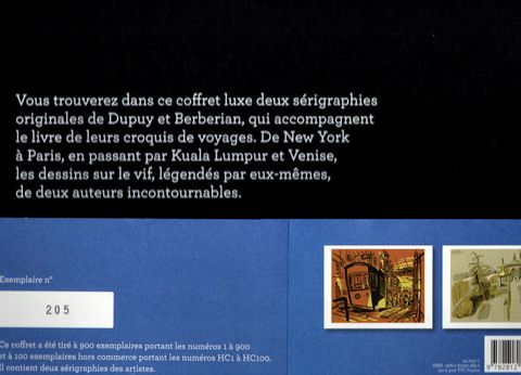 Lors d'un séjour aux États-Unis en 1995, Dupuy et Berberian, le célèbre duo de Fluide glacial, réalisent des croquis pour saisir les ambiances du quotidien. C'est à travers des scènes panoramiques ou des séquences de bande dessinée qu'ils rendent compte de leur voyage. Suivront alors d'autres séjours (Lisbonne, Tanger, Istanbul...) à leur tour croqués dans des carnets. Tous les croquis sont ici réunis dans un seul et même magnifique livre où les esquisses sont accompagnées de légendes teintées de l'esprit et de l'humour Dupuy-Berberian. Les amateurs de BD prendront plaisir à découvrir ses deux dessinateurs stars sous un jour nouveau !