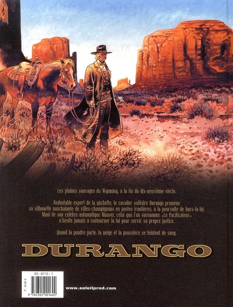 Les plaines sauvages du Wyoming, à la fin du dix-neuvième siècle. Redoutable expert de la gâchette, le cavalier solitaire Durango promène sa silhouette nonchalante de villes-champignons en postes frontières, à la poursuite de hors-la-loi. Muni de son célèbre Mauser, celui que l'on surnomme " Le Pacificateur " n'hésite jamais à contourner la loi pour servir sa propre justice. Quand la poudre parle, la neige et la poussière se teintent de sang.