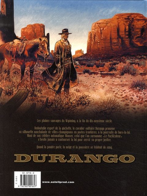 Les plaines sauvages du Wyoming, à la fin du dix-neuvième siècle. Redoutable expert de la gâchette, le cavalier solitaire Durango promène sa silhouette nonchalante de villes-champignons en postes frontières ; à la poursuite de hors-la-loi. Muni de son célèbre automatique Mauser, celui que l'on surnomme " Le Pacificateur " n'hésite jamais a contourner la loi pour servir sa propre justice. Quand la poudre parle, la neige et la poussière se teintent de sang.