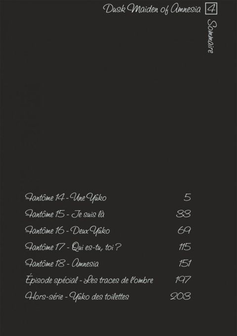 Dusk Maiden of Amnesia est une histoire de fantôme, à la limite de l'horreur. Alliant action et fantastique, elle est pleine de rebondissements et de révélations inattendues.