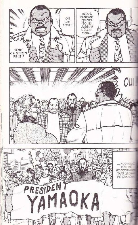 confiant, yamaoka poursuit sa route pour la maison blanche. pour cela il doit avant tout convaincre les militants démocrates, la plupart étant sympathisants du vice-président albert nore. de son côté, takashi poursuit son enquête, questionnant l'entourage de yamaoka, car il est bien décidé à comprendre cet homme si étrange qui est en réalité son père. dans ce deuxième volume, nous découvrons plus en détail les rouages de la politique américaine, les dessous d'une campagne électorale et aussi comment l'élaboration d'un tel projet ne peut se passer des désirs et des motivations de chaque acteur. à sa façon, kaiji kawaguchi nous montre que ce sont les histoires individuelles qui construisent l'histoire.