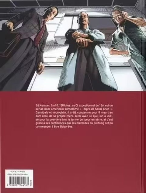 Ed Kemper, 2m10, 130 kilos, est un serial killer américain surnommé « l'Ogre de Santa Cruz ». Cannibale et nécrophile, il a été condamné pour 8 meurtres dont celui de sa propre mère. C'est avec lui que l'on a utilisé pour la 1ère fois le terme de tueur en série et les méthodes du profiling. Le scénariste Thomas Mosdi (auteur des Succubes) et le dessinateur David Jouvent (Les dragons de la cité rouge) retracent le parcours du tueur en série qui a inspiré le personnage d'Hannibal Lecter dans le Silence des Agneaux, dans une Bd à la fois passionnante et terrifiante.