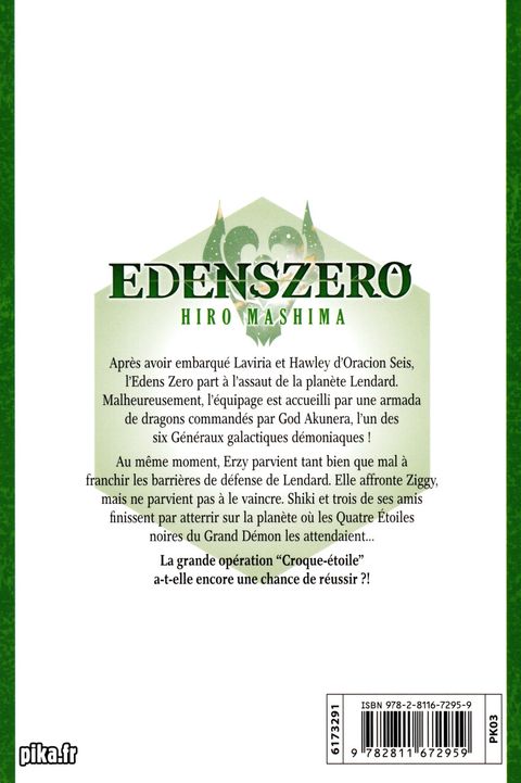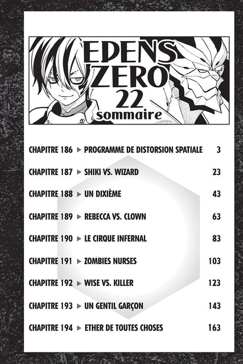 Les 4 premiers membres humains de l'Edens Zero contre les 4 étoiles noires de l'Edens One. Les combats sont magnifique et chaque étoile noire a sa propre façon de se battre. On vit plein d'émotion à travers les affrontements et j'adore ça. L'auteur arrive à maintenir un certain suspense en montrant (...) Voir le commentaire