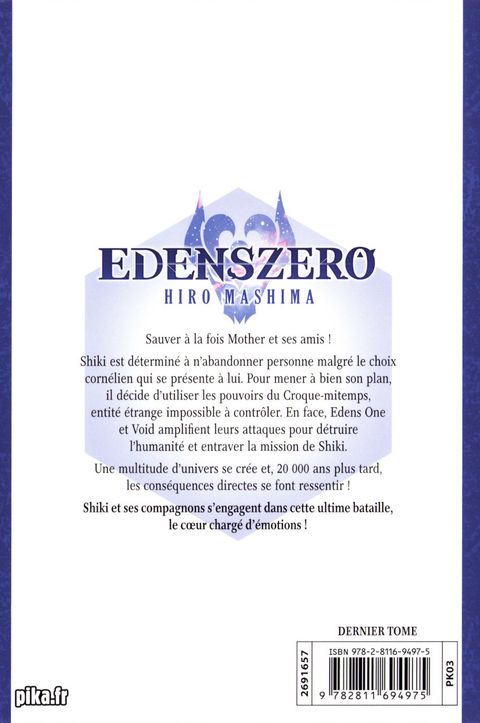 Sauver à la fois Mother et ses amis !Shiki est déterminé à n’abandonner personne malgré le choix cornélien qui se présente à lui. Pour mener à bien son plan, il décide d’utiliser les pouvoirs du Croque-mitemps, entité étrange impossible à contrôler. En face, Edens One et Void amplifient leurs attaques pour détruire l’humanité et empêcher Shiki de mener à bien sa mission. Une multitude d’univers se crée et, 20 000 ans plus tard, les conséquences directes se font ressentir ! Shiki et ses compagnons s’engagent dans cette ultime bataille, le coeur chargé d’émotions !
