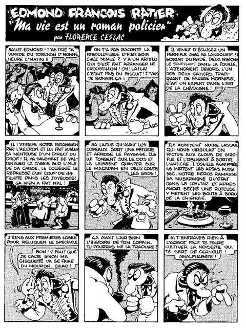 Voici enfin l'intégrale d'un des personnages les plus attachants de l'univers de Florence Cestac ainsi que l'une des figures emblématique des Éditions Futuropolis et de la bande dessinée adulte des années 80. Edmond François Ratier est l'un des premiers héros décomplexés de la bande dessinée des années 80, un personnage hommage à une certaine idée du polar à la française des années 50. Après les Beaux-Arts (Rouen) et les Arts Déco (Paris), Florence Cestac commence à dessiner pour Salut les copains, Lui, Mlle âge tendre... En 1972, elle ouvre avec Etienne Robial la première librairie de bandes dessinées à Paris, Futuropolis, puis, deux ans plus tard, la « mythique » maison d'édition du même nom. Collaboratrice de toutes les revues BD - de L'Écho des Savanes à Métal Hurlant, en passant par À suivre ou Pilote -, elle crée tour à tour des personnages tels Harry Mickson, Edmond François Ratier ou Gérard Crétin, illustre La Guerre des boutons, et rafle au passage deux Alph-Art Humour à Angoulême.