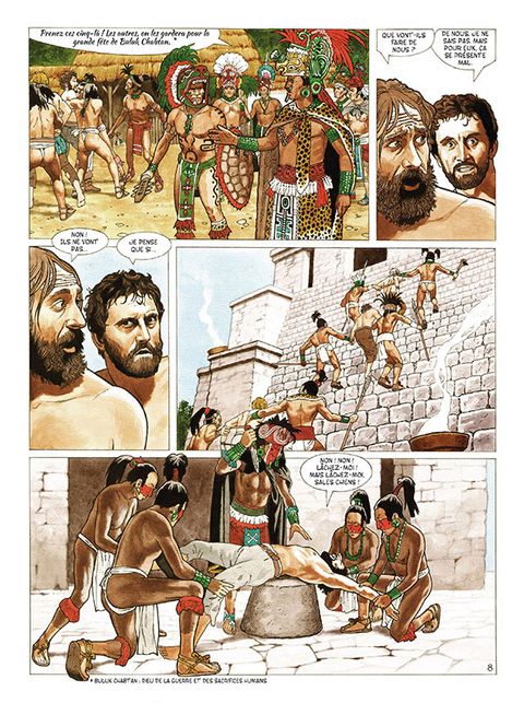 Basé sur des faits historiques, El Nakom (chef de guerre en maya) raconte l'incroyable histoire de Gonzalo Guerrero, un marin espagnol qui, après un naufrage, échoue sur les côtes du Yucatan en 1511, 8 ans avant l'arrivée de Cortez au Mexique. Contrairement à son compagnon d'infortune, Geronimo de Aguilar, Guerrero épouse complètement le mode de vie des Mayas et refuse de les rejoindre, lorsque les Conquistadores finissent par envahir le territoire maya (qui s'étendait sur ce qui est aujourd'hui le Yucatan, le Chiapas, le Guatemala, le Honduras et Belize). Il meurt les armes à la main, en 1536, au Honduras. Fresque d'un réalisme saisissant, El Nakom est une formidable aventure dans des décors somptueusement et scrupuleusement reconstitués. Formé à l'école de Tintin, Jéronaton propose avec cette série un hymne poignant au courage individuel, à la liberté et à la tolérance. El Nakom est aussi une plongée au coeur des derniers moments d'une civilisation aussi brillante que mystérieuse. Une fresque historique qui est le pendant BD d'Apocalypto, le remarquable film de Mel Gibson qui se penche, avec talent sur le cataclysme qui frappa les peuples des Amériques à l'arrivée des Blancs. Un Danse avec les Loups dans la jungle qui renoue avec la grande BD historique.