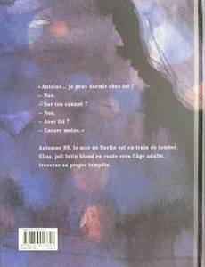Fin de l'automne 1989. Le mur de Berlin vit ses dernières heures, le monde s'apprête à entrer dans la dernière décennie du XXe siècle. Elisa, joli lutin blond à grande gueule, traîne sans conviction ses vingt ans et ses Doc Martens dans la petite ville où elle a grandi. Seuls comptent pour elle ses amis d'enfance, Daniel et Rachel. Elle, dont la vie familiale est un peu limitée, s'est investie dans la préservation du trio qu'ils forment depuis toujours, particulièrement depuis que ses deux amis sont devenus un couple. Pour ceux qui les connaissent, il semble évident qu'elle est amoureuse de son vieux copain Daniel, mais Elisa est un personnage assez compliqué, qui a pour habitude de garder secrètes les choses qu'elle aime et de brouiller les pistes jusqu'à l'absurde lorsqu'on pense la connaître un peu. Lorsque Rachel disparaît, Elisa fait de sa vie une véritable et incompréhensible tempête. Et s'accroche à Antoine, un trentenaire inconnu, sympathique mais un peu désarmé...