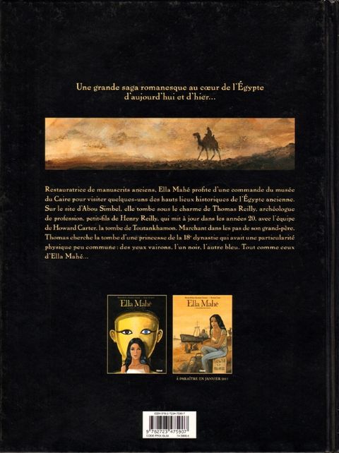 Elle s'appelle Ella, Ella Mahé. Restauratrice de manuscrits anciens, elle profite d'une commande du musée du Caire pour visiter quelques-uns des hauts lieux historiques de l'Égypte ancienne. Sur le site d'Abou Simbel, elle rencontre Thomas Reilly, archéologue, petit-fils d'Henry Reilly, qui mit à jour dans les années 20, avec l'équipe de Howard Carter, la tombe de Toutankhamon. Marchant dans les pas de son grand-père, Thomas recherche la tombe d'une princesse de la 18e dynastie. Cette princesse sans nom avait une particularité physique peu commune : des yeux vairons, l'un noir, l'autre bleu. Tout comme ceux d'Ella Mahé...