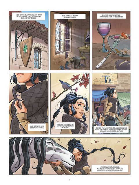 La fin du prologue. Ellana est submergée par la haine et le découragement. L'apprentie Marchombre n'en finit plus d'être mise à l'épreuve et, après l'assassinat de Hurj et Lahira des mains du félon Salvarode, son ami et amant Nillem l'abandonne à son tour. Le traitre a choisi de devenir un mercenaire du chaos. Avant d'emprunter la route d'Al-Jeit pour retrouver son maître Jilano et achever sa formation, Ellana doit revenir à un état de quiétude et d'harmonie. Le temps de quelques précieuses journées, elle soigne ses plaies et retrouve les joies d'une vie simple et douce. Elle ne s'en doute pas, mais elle ne connaitra plus d'instants aussi doux et légers avant longtemps... Ellana devra bientôt faire face à de terribles épreuves. D'autant que son maître n'attend qu'une chose d'elle : qu'elle écrive son nom dans le grand livre des légendes. Certaines des blessures d'Ellana lui laisseront des cicatrices, mais l'héroïne fera tout pour suivre la Voie, devenir une véritable Marchombre et embrasser sa destinée. Dernier tome de la série Ellana, ce sixième opus, fort et émouvant, resserre les liens entre Jilano et son élève et conclut avec brio ce récit préquel de La Quête d'Ewilan.