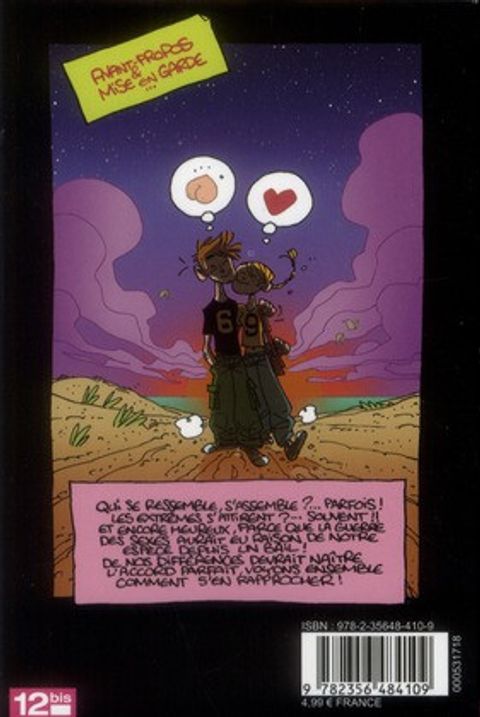 Qui se ressemble, s'assemble ?... parfois ! Les extrêmes s'attirent ?... souvent !! Et encore heureux, parce que sinon la guerre des sexes aurait eu raison de notre espèce depuis un bail ! Dans un format poche 10x15, cette étonnante collection de Monsieur B. s'ouvre par deux minis BD truffées de conseils pour qu'hommes et femmes apprennent à se comprendre. Si chaque album est autonome, ils fonctionnent avant tout par paire, par leur complémentarité : jusqu'à la planche 24, chacun aborde parallèlement le sujet, pour se séparer ensuite, et finir par se retrouver plus tard. Ainsi, ces deux drôles de petits albums peuvent à la fois être lisibles séparément, bien qu'ils gagnent évidemment à être découverts ensemble !