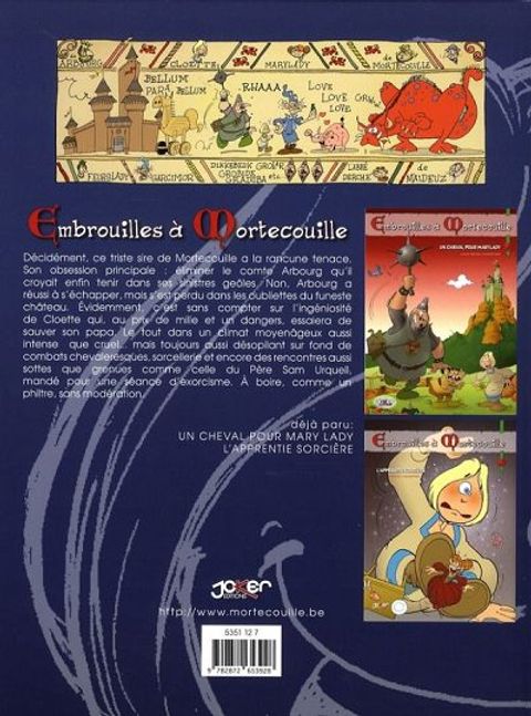 Décidément, ce triste sire de Mortecouille a la rancune tenace. Son obsession principale : éliminer le comte Arbourg qu'il croyait enfin tenir dans ses sinistres geôles. Non, Arbourg a réussi à s'échapper, mais s'est perdu dans les oubliettes du funeste château. Évidemment, c'est sans compter sur l'ingéniosité de Cloette qui, au prix de mille et un dangers, essaiera de sauver son papa. Le tout dans un climat moyenâgeux aussi intense que cruel... mais toujours aussi désopilant sur fond de combats chevaleresques, sorcellerie et encore des rencontres aussi sottes que grenues comme celle du Père Sam Urquell, mandé pour une séance d'exorcisme. A boire, comme un philtre, sans modération.