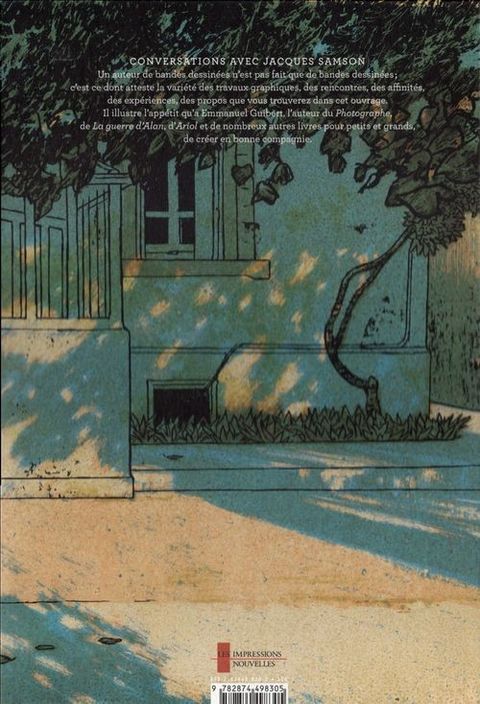 CONVERSATIONS AVEC JACQUES SAMSON Un auteur de bandes dessinées n'est pas fait que de bandes dessinées ; c'est ce dont atteste la variété des travaux graphiques, des rencontres, des affinités, des expériences, des propos que vous trouverez dans cet ouvrage. Il illustre l'appétit qu'a Emmanuel Guibert, l'auteur du Photographe, de La guerre d'Alan, d'Ariol et de nombreux autres livres pour petits et grands, de créer en bonne compagnie.
