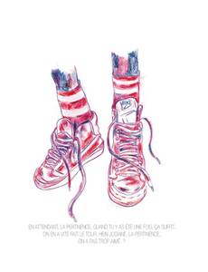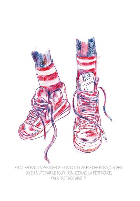 « En attendant, c'est les petites punchlines de deux amis dont un s'est fait plaquer, des instantanés, des petits morceaux de désoeuvrement, des bilans de rien, des réflexions de bitume et d'appart mal rangé, de rupture amoureuse et de lendemains de fêtes, comme ça, en attendant que ça passe, le temps d'un mois d'octobre en suspens. » - Fabrice Caro « On n'arrivait pas a prendre une décision sur un projet... alors, en attendant, j'ai demandé à fab de me montrer ses écrits, j'ai pris un ou deux mois pour dessiner... hors des cases... la possibilité du dessin. Simplement me frotter à ses textes sans qu'il me vampirise. Il me donne la liberté totale de représentation, alors je dessine ce que je veux, en rouge et bleu parce que j'ai acheté un lot sur une brocante. Ses punchlines, c'est de l'amour 2018, ça sent la nuit et les matins raides, les tiraillements, les instants seconds, j'ai pas toujours collé mes dessins au texte, des fois les émotions du texte me faisait penser à un autre truc... des sentiments parallèles. Je sais ce qu'il veut raconter. » - Gilles Rochier Second volume de la collection Asterozoa, consacrée au dessin contemporain, En attendant est une collaboration entre deux auteurs de bande dessinée aux univers singuliers et pas forcément complémen-taires. Fabrice Caro écrit une série de punchlines retranscrivant une conversation entre deux amis, instantanés d'émotions attrapées en vol, conversation livrée à Gilles Rochier qui, avec deux crayons de couleurs (rouge et bleu), va les accueillir dans son univers graphique, les laisser rebondir au fil de sa pensée. Le tout est mélangé à la manière d'un cut-up, construisent de nouveaux rapports entre textes et dessins, un nouveau fil de pensée, une matière qui raconte des instants du monde et des fragments de vie.