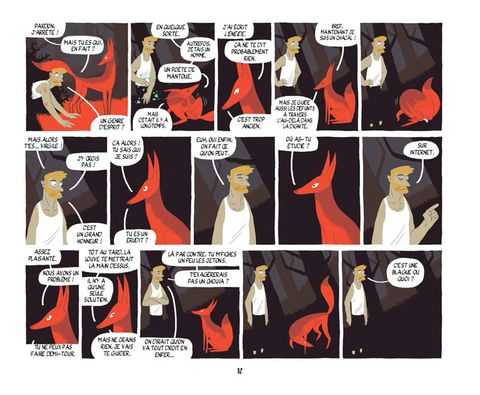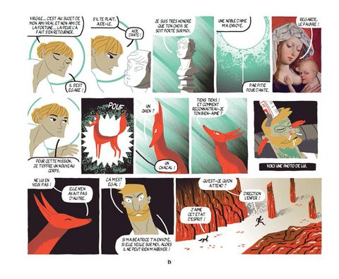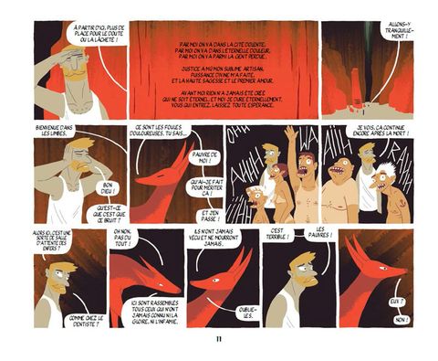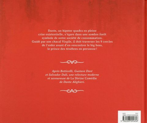 Dante, un hipster quadra en pleine crise existentielle, s'égare dans une forêt symbole de l'errance de l'individu dans notre société de consommation. Guidé par le poète antique Virgile (incarné ici en un chacal rouge), Dante traverse les 9 cercles de l'enfer, faisant nombre de rencontres inattendues : Silvio Berlusconi (qui s'y sent visiblement chez lui), Hitler et Pinochet mijotant dans un fleuve de sang, ou encore deux diablotins, qui tentent de remettre l'énergie atomique au goût du jour...