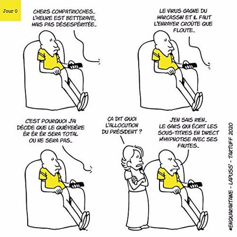 Après les aventures d'un chat et son maître dans Putain de Chat, Lapuss' raconte la vie pendant le confinement. Entre la fabrication du pain et la préparation stratégique des sorties en supermarché, nul doute que vous vous reconnaîtrez dans ces capsules quotidiennes de la vie en quarantaine...