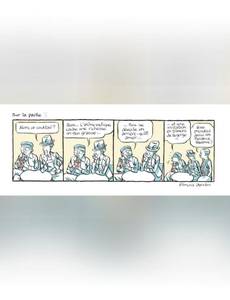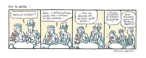 En terrasse d'un bar au serveur peu amène, habitués, touristes et passants se succèdent et se croisent. Tour de France, élections primaires et présidentielles, rentrée scolaire, sortie d'un nouveau téléphone, festival de Cannes, hygiène de vie, attentats, lutte des classes, expos, mais aussi simples anecdotes du quotidien sont autant de sujets de conversation et de prétextes pour des saynettes absurdes et décalées. Initialement publié dans la matinale du Monde, En terrasse nous invite à observer, à travers le regard ironique et élégant de François Ayroles, un monde dans lequel l'âge n'est plus un gage de sagesse, la fonction n'induit plus la légitimité, où le facultatif devient priorité, et l'évidence incongrue.