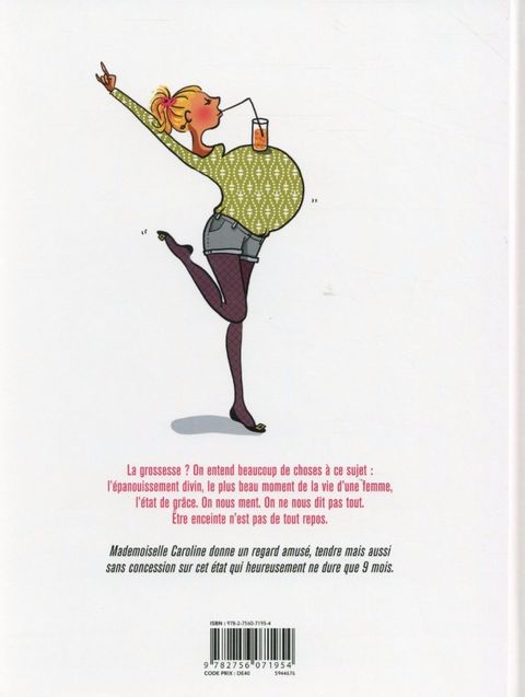 Être enceinte n'est pas de tout repos. Caroline donne un regard amusé, tendre mais aussi cynique et sans concession sur cet état qui heureusement ne dure « que » 9 mois. Elle raconte en détail chaque étape, telle une chroniqueuse de sa propre vie. Finalement disons-le : il faut être drôlement motivée pour vouloir des enfants !