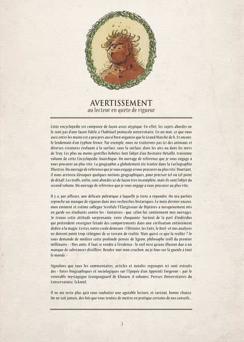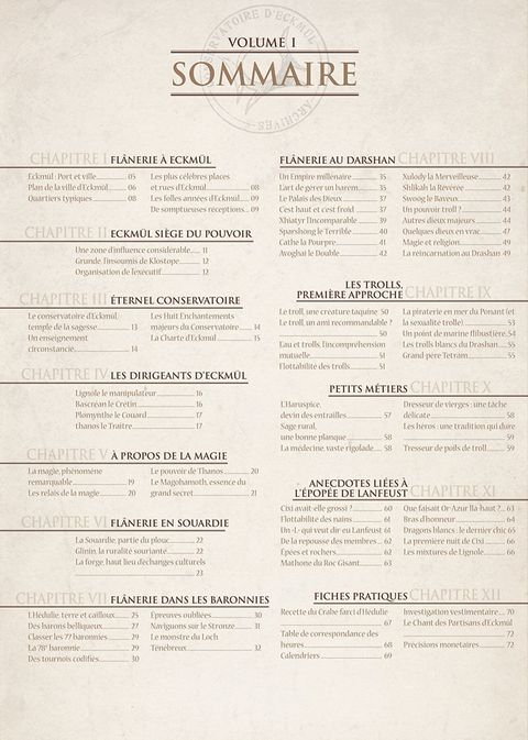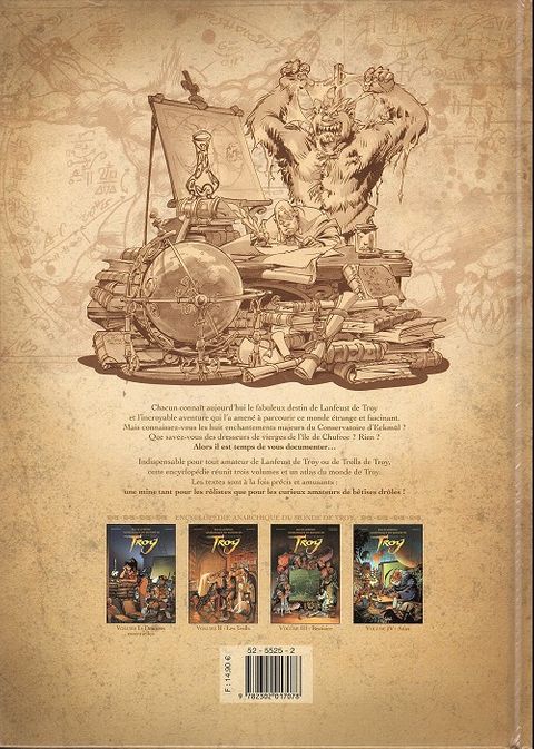 Ici un hors série, ou les auteurs se lâchent pour notre plus grand bonheur à nous dépeindre le monde de Troy à la mode d'une encyclopédie (sans réelle structure) tel qui pourrait se trouver dans la grand bibliothèque du conservatoire d'Eckmül. Dessins, calembours, anecdotes,...