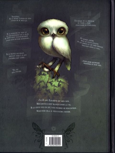 Barbara Canepa, co-créatrice de Sky Doll, écrit une extraordinaire aventure au cœur de la vie, qui aborde avec singularité, la peur de mourir...avec la complicité d'Anna Merli au dessin. Pour vivre en paix, faudrait-il accepter l’idée d’être mortels ? Si le monde autour de vous jamais ne changeait. Si le murmure du vent et le balbutiement de la pluie indéfiniment se répétaient. Si le silence souverain régnait jusqu’à ce que l’invisible finisse par vous appartenir... Tel est mon univers. Un monde où la berceuse du temps a cessé sa complainte. Un monde anémié où les âmes perdues trouvent enfin la paix dans leurs mausolées solennels et sans âges. Je suis âgée de 13 ans. Mon nom est Elisabeth. Mes cheveux sont blancs comme la vie. Mourir est votre seule chance de me rencontrer.