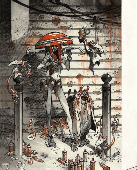Auteur de bande dessinée atypique, qu'on aime ou qu'on déteste, mais qui ne laisse jamais indifférent, Cromwell est également un illustrateur de grand talent. End Zone est son second artbook après le magnifique Quelque Part sorti en 2011. On y retrouve de vieilles connaissances comme les Minettos ou Anita Bomba, mais aussi un très grand nombre d'illustrations inédites réalisées avec une multitude de techniques allant du stylo-bille à l'acrylique, avec toujours avec ce mélange de rigueur et d'explosion qui n'appartient qu'à lui.