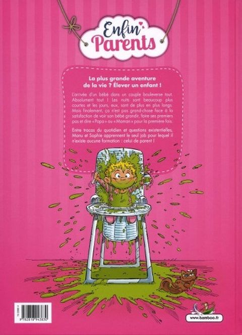 L'arrivée d'un bébé dans un couple bouleverse tout. Absolument tout ! Les nuits ne sont plus les mêmes. Elles sont beaucoup plus courtes. Et les jours sont de plus en plus longs. Mais finalement, ça n'est pas grand-chose devant la satisfaction de voir son bébé grandir, faire ses premiers pas et dire « Papa » pour la première fois. À moins qu'il ne confonde encore les « pa » et les « ca ». Entre tracas du quotidien et questions existentielles, Manu et Sophie apprennent le seul job pour lequel il n'existe aucune formation : celui de parents !
