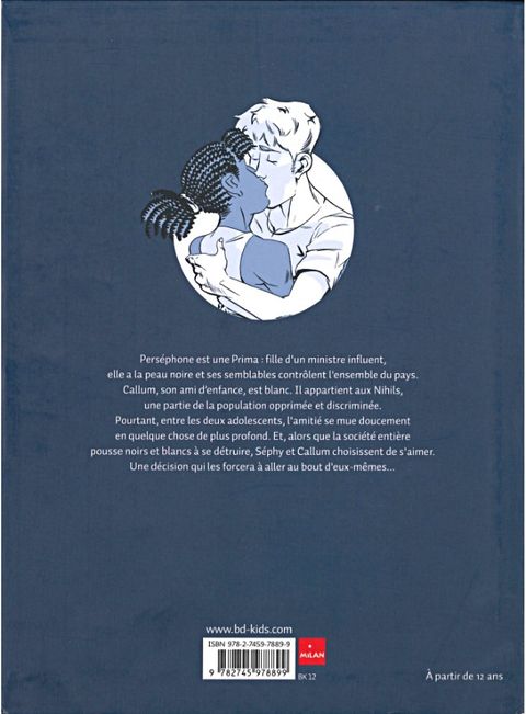 Deux adolescents, une histoire d'amour impossible. Ça ne vous rappelle rien ? Dans une société où la couleur de peau détermine la position sociale, Callum et Perséphone décident d'aller jusqu'au bout. Perséphone Hadley est une Prima, ils ont la peau noire et contrôlent l'ensemble du pays. Elle est la fille d'un ministre influant. Callum McGrégor, son ami d'enfance, est blanc. Il appartient aux Nihils, une partie de la population opprimée et discriminée. Leur amour naissant va être bouleversé par cette société divisée où noirs et blancs ne sont pas censés s'aimer... Les deux adolescents vont en effet devoir choisir entre la route qui a été tracée pour eux par leur entourage respectif et l'amour qui les attire l'un vers l'autre. Mais comment construire quelque chose quand la société toute entière vous pousse à la haine ? Et comment pourraient-ils continuer à se fréquenter alors que tout les oppose ? Ce roman graphique est l'adaptation du best seller éponyme de Malorie Blackman. Ian Edington au scénario et John Aggs au dessin donnent vie à ce drame avec brio. Car c'est bien de cela qu'il s'agit : un Roméo et Juliette transposé dans une société ravagée par l'apartheid.