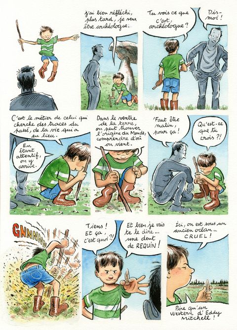 Fils aîné d'une famille de jeunes ruraux, le jeune Sébastien Samson ne connait que le périmètre de son petit village et du chemin de fer qui le traverse comme une veine et rythme les journées de sa maman, garde-barrière.Enfant, il se construit dans ce monde clos, dans lequel la naïveté et l'ignorance du monde favorisent les rêves, en même temps qu'elles tendent à les rendre caduques. Pourtant, Sébastien sent déjà que sa vie ne se passera pas ici, pas dans le même monde que ses parents.Aujourd'hui, Sébastien est devenu adulte, parent. En plus d'être professeur d'arts plastiques, il est également auteur de bande dessinée. Il se rend à New York pour la promotion de son dernier livre. Soudainement, Sébastien croit apercevoir son double, enfant, en plein New York. Une illusion saisissante...Revenu sur les terres de son enfance rendre visite à ses parents, l’adulte entame un dialogue avec ce petit garçon plein d'ambitions qu'il a été. Explorant ensemble les terrains en jachère et maisonnettes en ruine de son passé, Sébastien éclaire d'une lumière nouvelle cette enfance disparue.D'abord tenté par une forme de nostalgie, Sébastien adulte va progressivement transformer son regard sur cet environnement familier, jusqu'à considérer que l'enfance vécue ici était privilégiée, sans doute même favorisée, à rebours des clichés sur la vie en milieu rural.