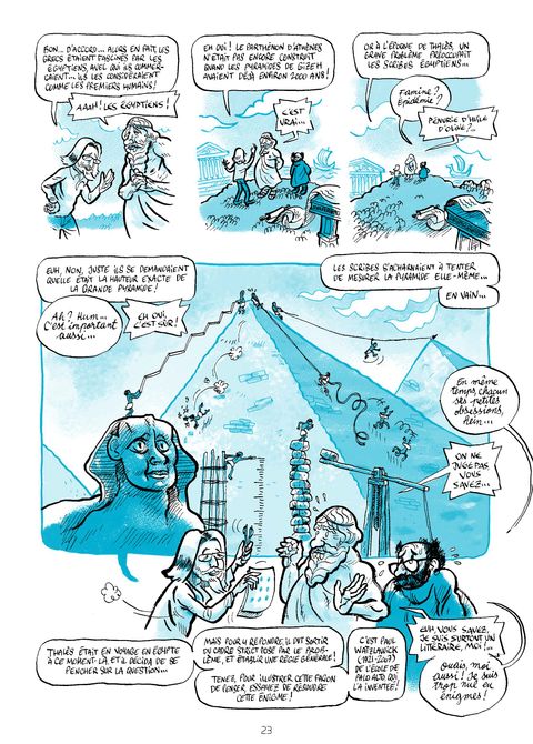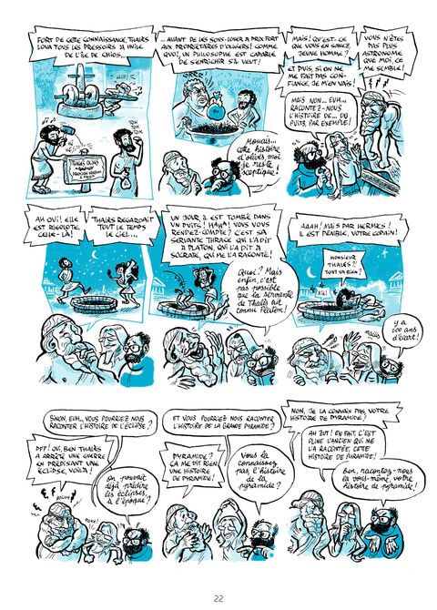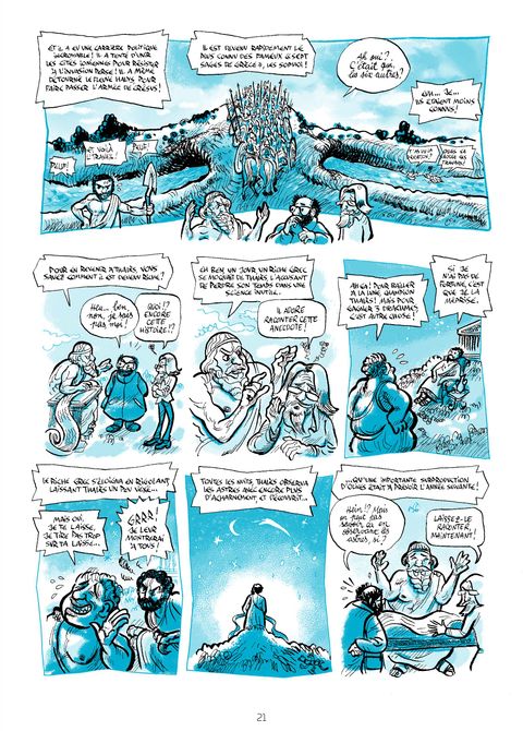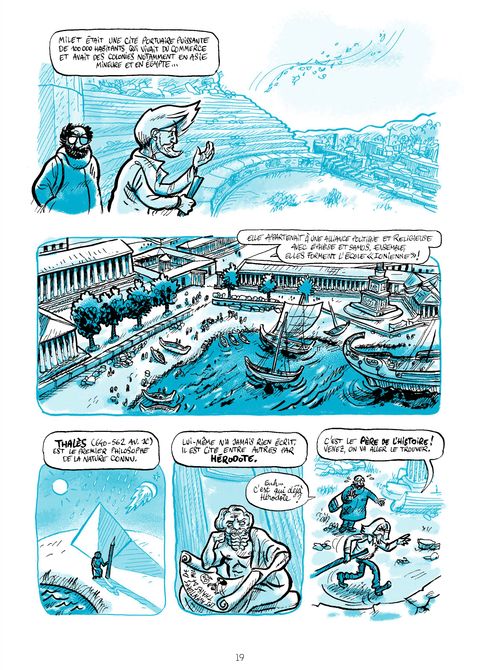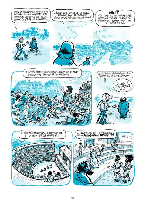 Comment en est-on venu à vouloir comprendre l’univers ? Quelles sont les origines de la science ? Qui étaient les premiers scientifiques à élaborer des théories d'interprétation du monde ? Autant de questions essentielles pour comprendre le monde actuel...Pour y répondre, deux personnages - les doubles des auteurs - partent dans le passé à la rencontre de celles et ceux qui ont fait la science. Derrière des noms illustres, ou injustement inconnus, se cachent souvent des personnages fascinants avec des vies extraordinaires !Avec humour, Pascal Marchand et Jean-Benoît Meybeck nous embarquent dans la folle histoire de la science et des idées. Dans ce premier tome, direction la Grèce Antique, berceau des sciences contemporaines, de l’école de Milet à l’Académie de Platon !