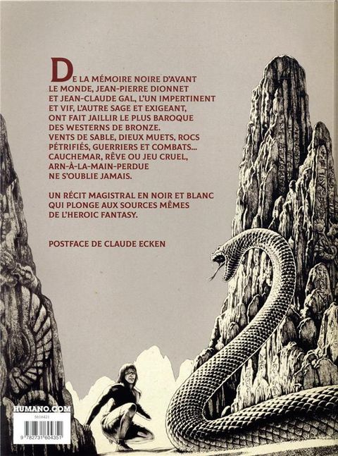 Dans un temps si lointain que la mémoire des hommes l'a oublié, en des contrées ravagées par la guerre, l'orgueil des hommes et leur soif de pouvoir, Arn a connu l'humiliation et l'exil. Banni de son royaume, bafoué par ses ennemis, il n'aura de cesse de chercher à se venger et à recouvrer sa dignité perdue... Dans toute sa carrière, Jean-Claude Gal n'aura produit que cinq albums, mais chaque page est un chef-d'oeuvre. Une oeuvre à (re)découvrir grâce à cette édition en noir et blanc original.