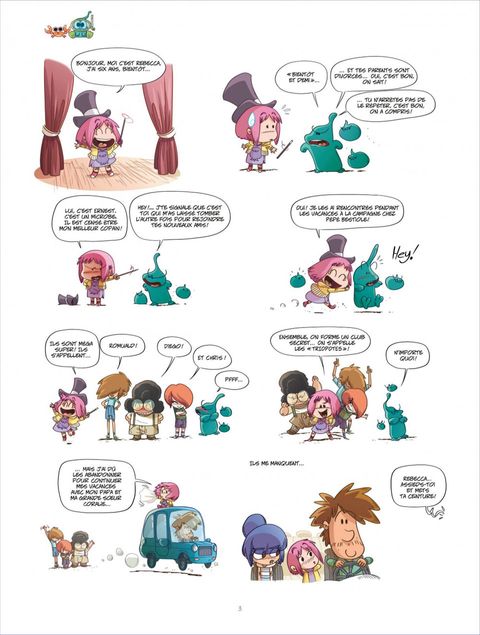 Après son séjour chez Pépé Bestiole, Rebecca poursuit ses vacances chez son papa, dans sa nouvelle maison située au « Pays des cailloux qui marchent », en réalité un camping au bord de la mer. Rebecca s'y fait de nouveaux amis, notamment Rodrigue, un gamin boudeur et taciturne qui lui apprend à pêcher et, ô surprise, c'est Ernest qui réapparaît parmi les poissons pêchés, Ernest qui se sent délaissé et abandonné depuis que le rhume de Rebecca a disparu. Ne se chercherait-il pas lui aussi de nouveaux amis ?