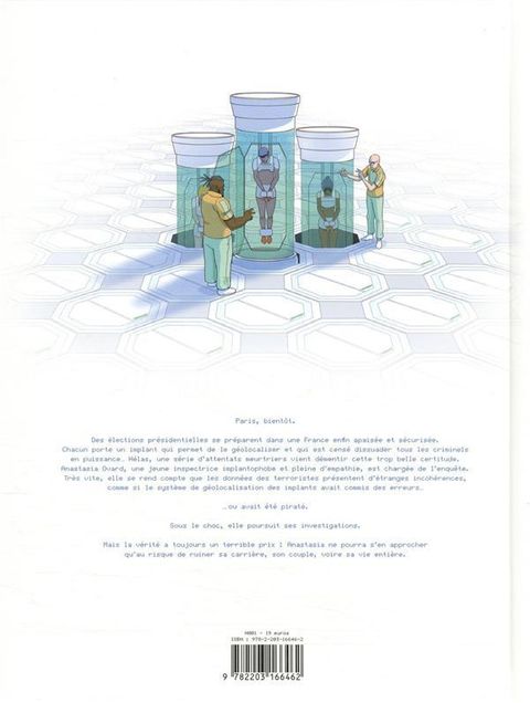 Le système peut tout contrôler. Sauf ses erreurs. Dans un futur proche, la France est devenue pionnière en matière de nouvelles technologies. Chaque individu porte un implant pour se connecter à Internet. Toutes les données personnelles sont conservées dans une Crypte et consultables seulement par la justice et la police, dans le but d’éradiquer toute criminalité. Ce système semble bien fonctionner, mais en pleine campagne présidentielle, Paris connaît une vague d’attentats très meurtriers. D’où vient la faille ? L’inspectrice Anastasia Ovard va mener l’enquête !