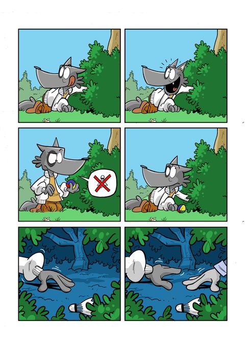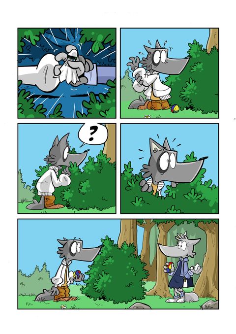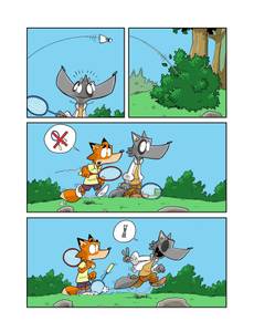 Ésope le loup joue au badminton avec son ami le renard. Ce dernier frappe si fort que le volant atterrit hors du champ de jeu, dans un buisson. En allant le récupérer, Ésope tombe nez à nez (ou plutôt museau à museau) avec Ségur la louve. Celle-ci lui lance une œillade tellement charmante qu’Ésope en reste bouche bée. Amoureux au premier regard, il n’aura de cesse de conquérir le cœur de la belle.